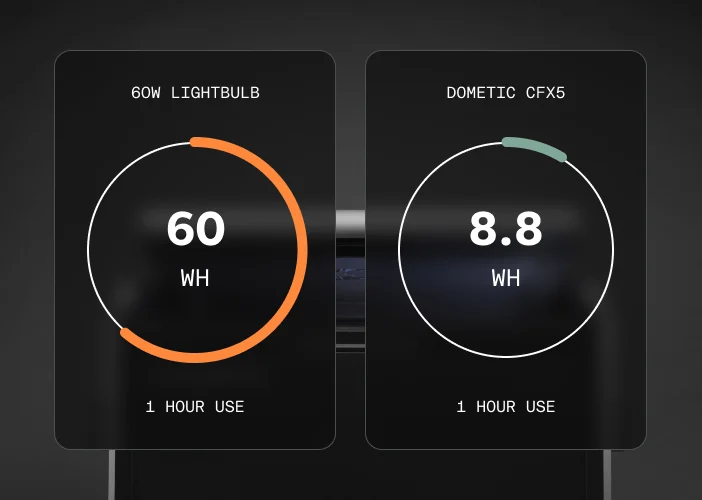 that keeps your cooler cold, light, and efficient. Just like the insulation in your water bottle – by eliminating gas molecules, VIPs drastically reduce heat transfer. The result? Your CFX5 stays cold with less energy, while remaining compact and lightweight. More efficiency, more cooling, less bulk.